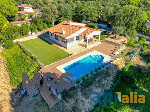 Ubicada en una parcela de 2.240 m² totalmente vallada, cuenta con piscina privada, amplio aparcamiento exterior para varios vehículos, garaje cerrado y trastero.