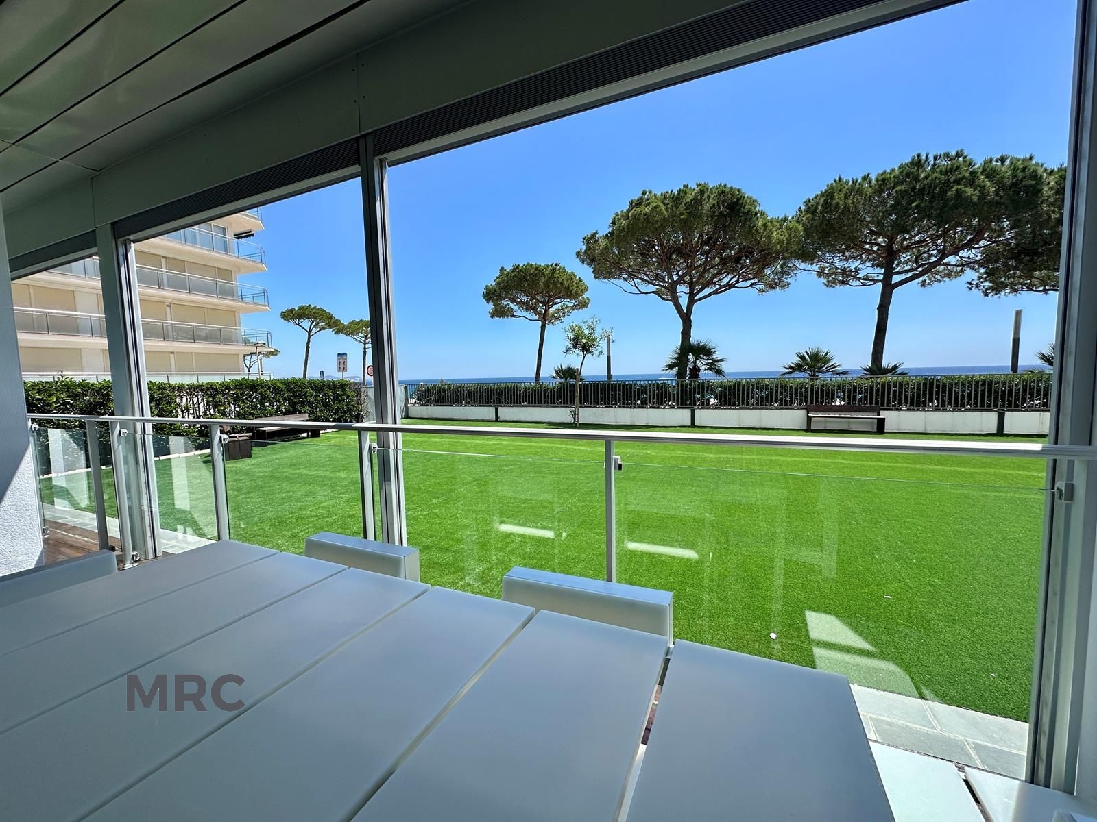 Desde el salón se accede a una amplia terraza con vistas al mar, equipada con mesa y sillas, perfecta para disfrutar de desayunos al aire libre o cenas tranquilas contemplando el entorno.