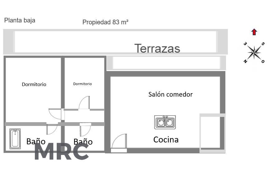 La vivienda dispone de un dormitorio principal tipo suite con cama de matrimonio, proporcionando un espacio íntimo y confortable. El segundo dormitorio cuenta con dos camas individuales, ideal para familias o invitados.